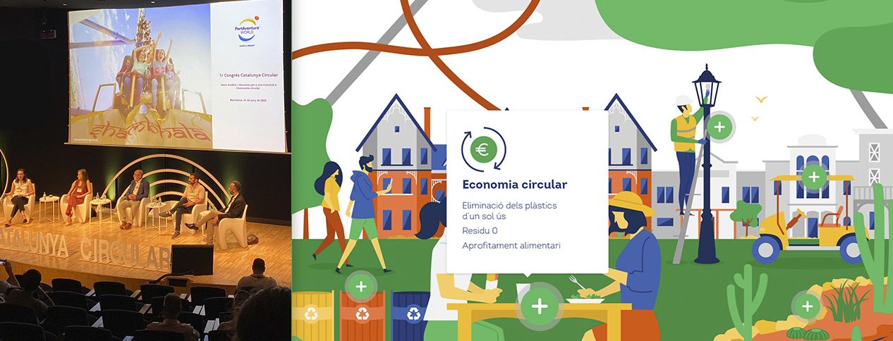 A la quarta taula van presentar-se nous models i solucions per a una transició a l’Economia circular, on vam escoltar l’experiència i els projectes de quatre empreses de diferents sectors. PortAventura World va explicar la seva estratègia mediambiental, que se centra principalment en la gestió de residus. D’entre els seus projectes, cal remarcar el referent a la circularització dels residus orgànics, que es transformen en compost per aplicar a les zones verdes dins el seu recinte i compten amb la participació d’entitats socials.