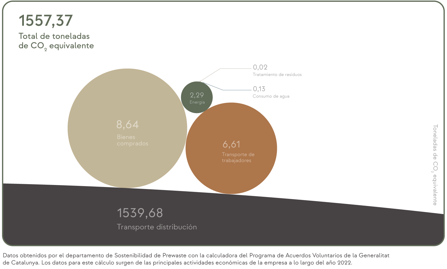 Hemos calculado la cantidad de CO₂ que genera la actividad de Prewaste para poder analizar dónde aplicar mejoras y así reducir nuestra huella de carbono