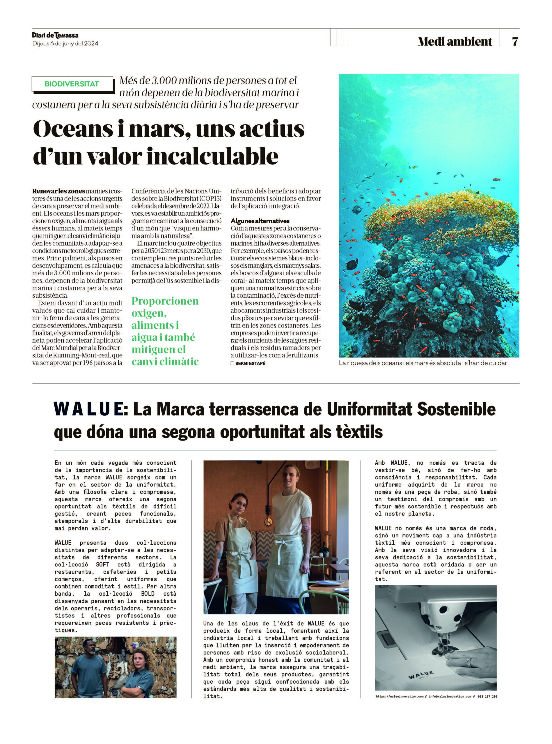 Recentment, la marca WALUE ha estat notícia al «Diari de Terrassa» amb el titular: WALUE: La Marca de Uniformitat Sostenible que Dóna una Segona Oportunitat als Tèxtils. Però, què hi ha darrere d’aquesta marca que està revolucionant el món dels uniformes?